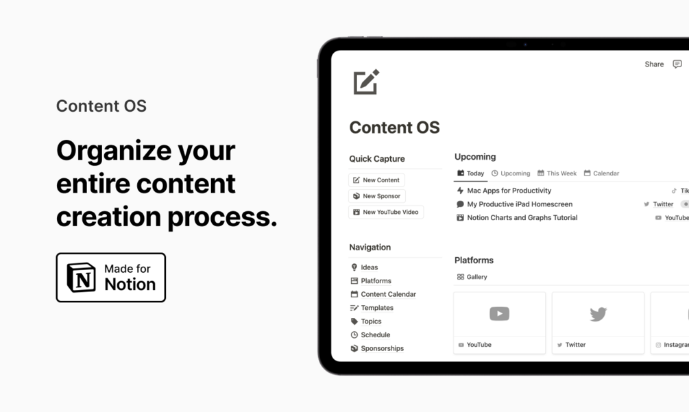 Content OS is a ready-to-use Notion system to help you plan, write and scale your social media content.