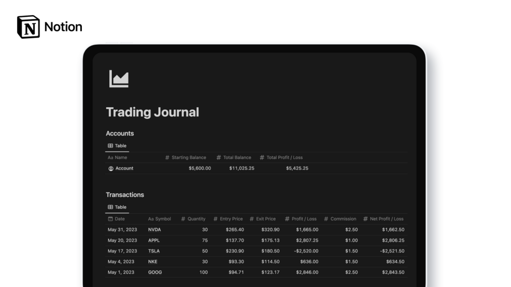 This simple and user-friendly Notion template helps you understand your trading habits, improve your strategies, and maximize your profits.