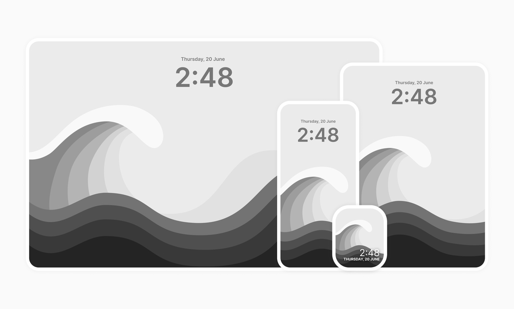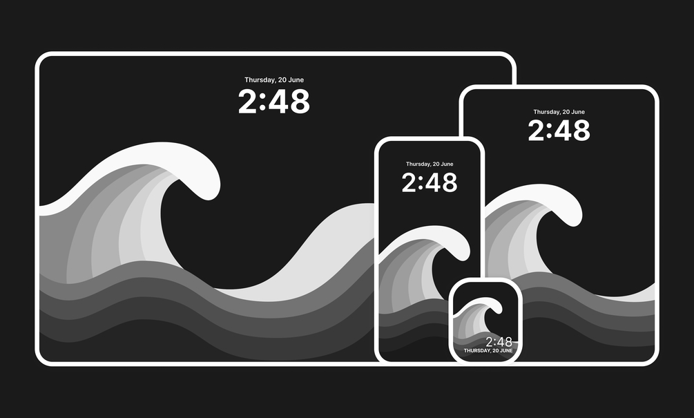 Featuring custom wallpaper sizes for desktops, tablets, phones, and watches.