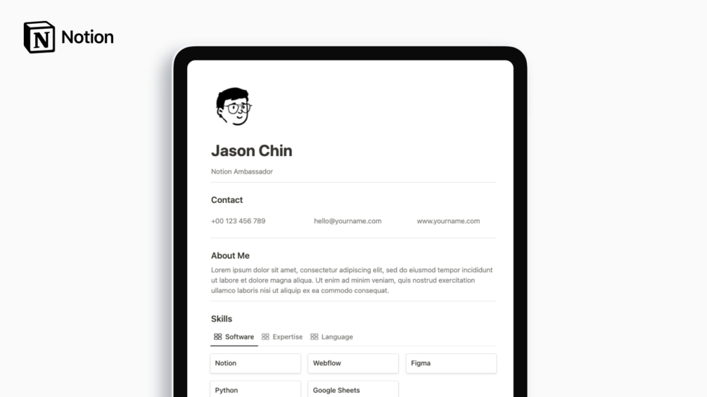 This Notion template helps you get your resume ready in less than 5 minutes.